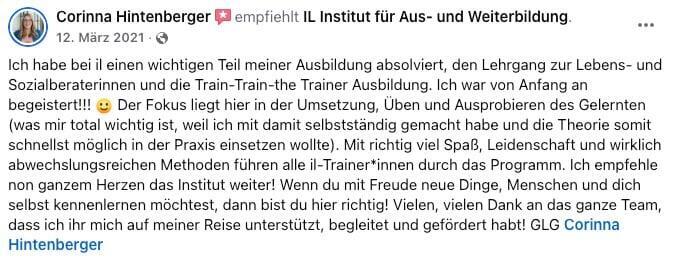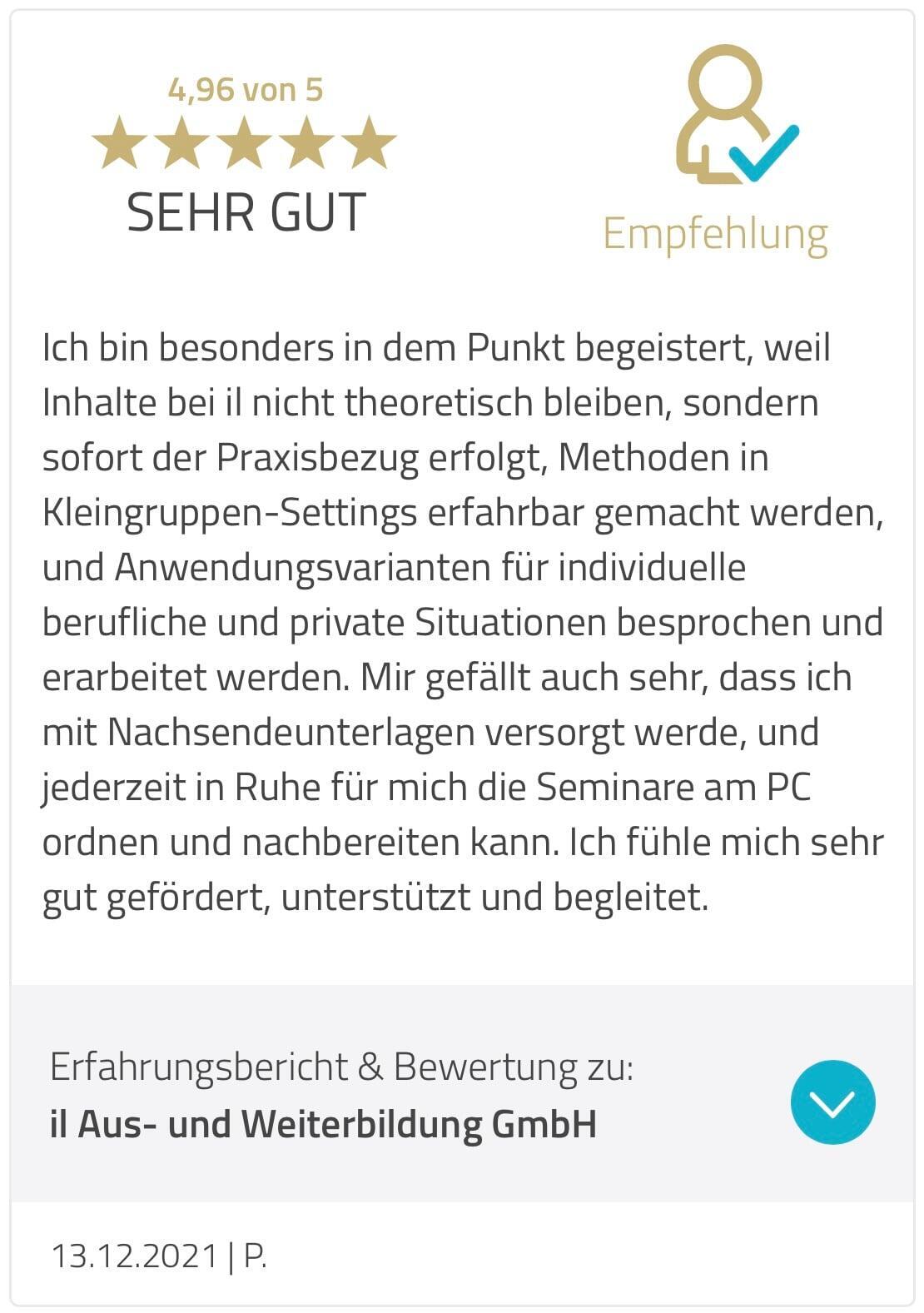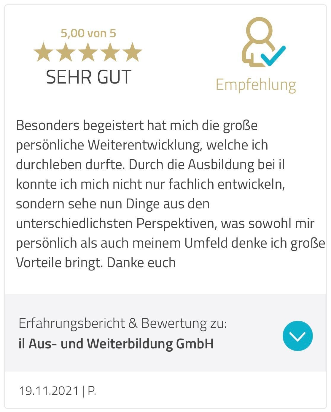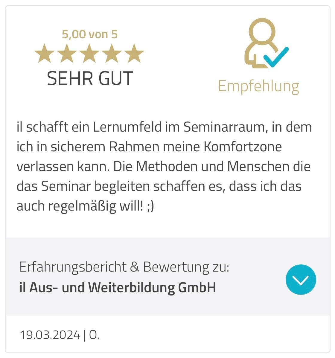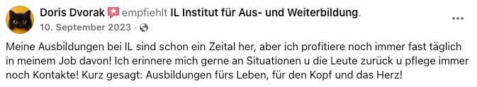 - Starke Community über die Ausbildung hinaus – Viele bleiben in der il-Community aktiv und tauschen sich weiter aus – kollegial, inspirierend, unterstützend.