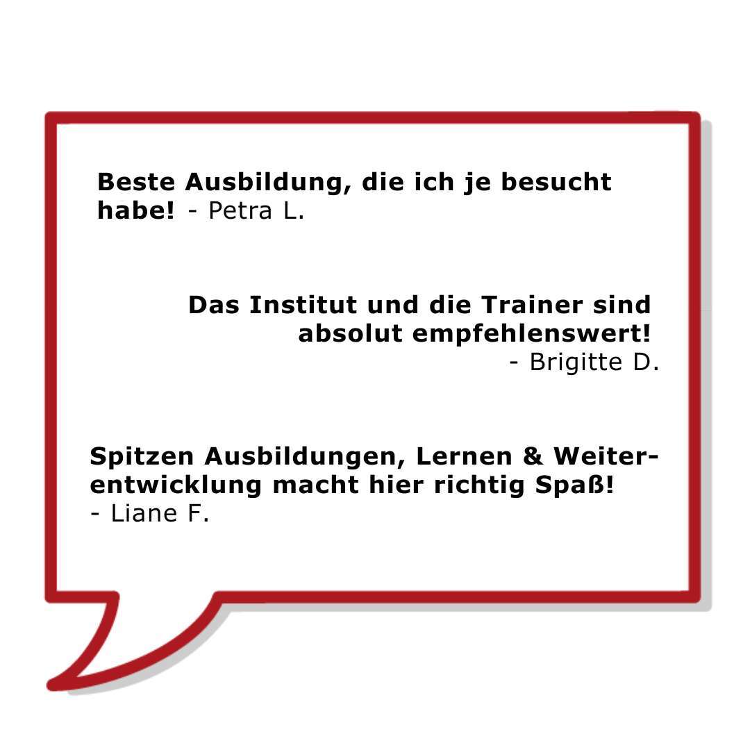 Die Trainer:innen überzeugen nicht nur durch fachliches Know-How, sie sind auch begeistert und absolut überzeugt von dem, was sie tun. […] Highlights sind definitiv die Vielfalt an Methoden, welche man in einem "sicheren" Rahmen austesten kann und auch mal versuchen kann, wie weit man sich selbst traut zu gehen. […]