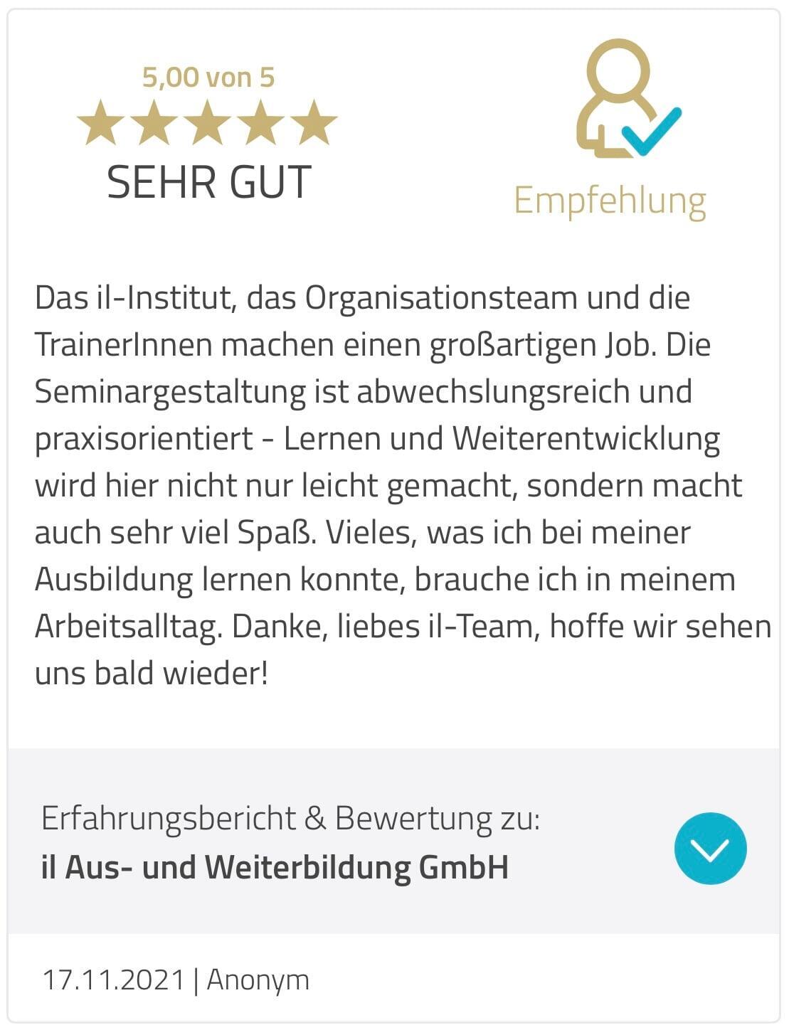 ©2025 | il Aus- und Weiterbildungs GmbH | Impressum | Datenschutz | Cookie Declaration | AGBs